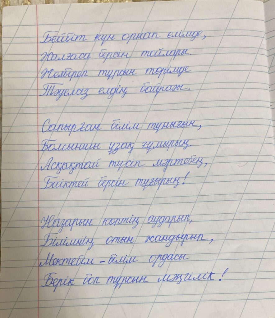 Аманқос Ақмаржан Оспанқызы. Көркем жазу Мектеп атауы Children Сaspian 2a-сынып оқушысы Маңғыстау облысы Мұнайлы ауданы село Атамекен Аманқос Ақмаржан Оспанқызы ,8 жаста ,Ақтау қаласы,жетекшісі Арайлым Құдіретқызы Поделиться FacebookTwitterPinterestWhatsApp Басқа қатысушылар Директор Тәжен Айбар Полатұлы. Көркем жазу 0 2-сынып оқушылары арасында өткен Республикалық «көркем жазу» байқауы Алмасұлы Исламхан. Көркем жазу 0 2-сынып оқушылары арасында өткен Республикалық «көркем жазу» байқауы Маман Махмуд Асқарұлы. Көркем жазу 0 «ҮЗДІК АВТОРЛЫҚ БАҒДАРЛАМА» БАЙҚАУЫ Самбетова Айжаркын Тулегеновна 0 «ҮЗДІК АВТОРЛЫҚ БАҒДАРЛАМА» БАЙҚАУЫ Шарапова Алия 0