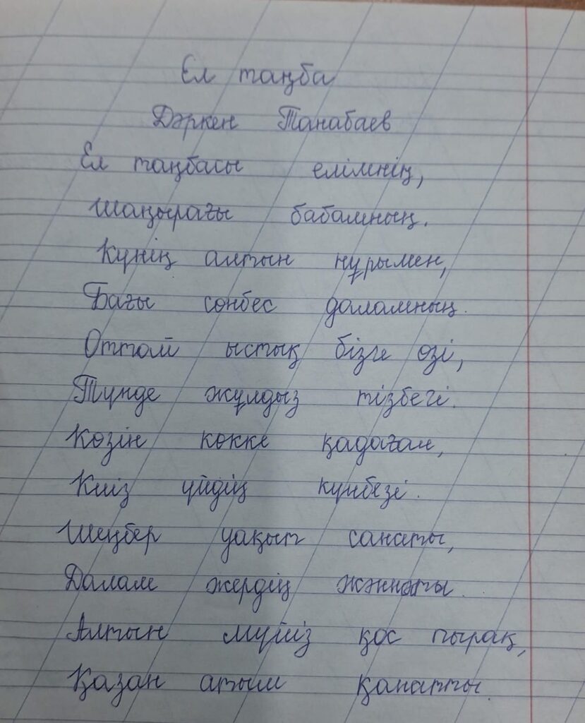 Даулетбек Али Русланович. Көркем жазу Байқоныр қаласы 272-орта мектеп 3 "Б" Сынып жетекшісі Нуржанова Баян Казибаевна Поделиться FacebookTwitterPinterestWhatsApp Басқа қатысушылар «АЛТЫН ҚАЗЫНА» КӨРКЕМ ЖӘНЕ СӘНДІК-ҚОЛДАНБАЛЫ ӨНЕР КОНКУРСЫ Байқауға қатысушы: Тойбазарова Мөлдір Ержанқызы 0 «ҮЗДІК АВТОРЛЫҚ БАҒДАРЛАМА» БАЙҚАУЫ Еспембетова Раушан Жалеловна 0 «ҮЗДІК АВТОРЛЫҚ БАҒДАРЛАМА» БАЙҚАУЫ Шикунова Юлия Анатольевна 0 «ҮЗДІК АВТОРЛЫҚ БАҒДАРЛАМА» БАЙҚАУЫ Кадирова Салтанат Сатышовна 0 «ҮЗДІК АВТОРЛЫҚ БАҒДАРЛАМА» БАЙҚАУЫ Атаханова Жанагул Жусиповна 0