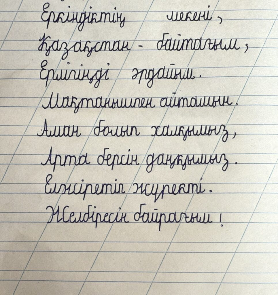 Досмаханбет Айлин. Көркем жазу Оқушы: Досмаханбет Айлин Мектеп:«Жайылма» бастауыш мектебі Жетекші: Қарабек Баян Сыныбы: 1—сынып Поделиться FacebookTwitterPinterestWhatsApp Басқа қатысушылар «ҮЗДІК АВТОРЛЫҚ БАҒДАРЛАМА» БАЙҚАУЫ Тогтал Ульжан 0 Даярлық сыныптары мен 1-сынып оқушылары арасында өткен Республикалық «көркем жазу» байқауы Жанғалиқызы Махаббат. Көркем жазу 0 Даярлық сыныптары мен 1-сынып оқушылары арасында өткен Республикалық «көркем жазу» байқауы Темірхан Ұлсая. Көркем жазу 0 Даярлық сыныптары мен 1-сынып оқушылары арасында өткен Республикалық «көркем жазу» байқауы Есен Аяжан. Көркем жазу 0 Даярлық сыныптары мен 1-сынып оқушылары арасында өткен Республикалық «көркем жазу» байқауы Батырхан Сағыныш. Көркем жазу 0