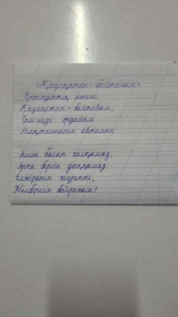 ЕРКІНҰЛЫ ЕРНИЯЗ. Көркем жазу ЕРКІНҰЛЫ ЕРНИЯЗ. 1 А СЫНЫБЫ. ҚЫЗЫЛОДА ОБЛЫСЫ ҚАРМАҚШЫ АУДАНЫ АҚТӨБЕ АУЫЛЫ №109 ОРТА МЕКТЕБІ Поделиться FacebookTwitterPinterestWhatsApp Басқа қатысушылар «ҮЗДІК АВТОРЛЫҚ БАҒДАРЛАМА» БАЙҚАУЫ Махамбетова Асемгул Махамбетовна 0 «АЛТЫН ҚАЗЫНА» КӨРКЕМ ЖӘНЕ СӘНДІК-ҚОЛДАНБАЛЫ ӨНЕР КОНКУРСЫ Байқауға қатысушы: Маммадинов Тимур 0 2-сынып оқушылары арасында өткен Республикалық «көркем жазу» байқауы Амандық Муслим. Көркем жазу 0 2-сынып оқушылары арасында өткен Республикалық «көркем жазу» байқауы Қуанышбай Ару. Көркем жазу 0 2-сынып оқушылары арасында өткен Республикалық «көркем жазу» байқауы АМАНДЫҚ МУСЛИМ БОЛЫСҰЛЫ. Көркем жазу 0