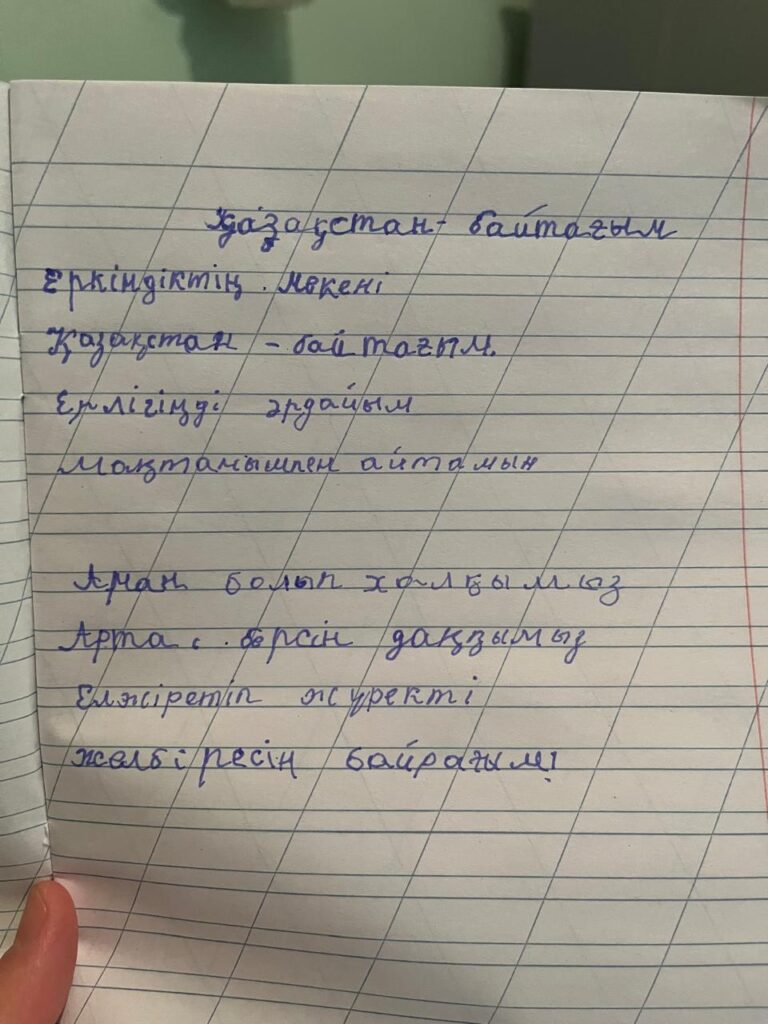 Көркем жазу. Абдуллаева Шодиона Ә.Жангелдин атындағы №27жалпы білім беретін мектеп коммуналдық мемлекеттік мекемесі.Мектеп алды сынып "А"оқушысы.Абдуллаева Шодиона сынып жетекшісі:Мирзакулова Амангул Поделиться FacebookTwitterPinterestWhatsApp Басқа қатысушылар «ҮЗДІК АВТОРЛЫҚ БАҒДАРЛАМА» БАЙҚАУЫ Махамбетова Асемгул Махамбетовна 0 «АЛТЫН ҚАЗЫНА» КӨРКЕМ ЖӘНЕ СӘНДІК-ҚОЛДАНБАЛЫ ӨНЕР КОНКУРСЫ Байқауға қатысушы: Маммадинов Тимур 0 2-сынып оқушылары арасында өткен Республикалық «көркем жазу» байқауы Амандық Муслим. Көркем жазу 0 2-сынып оқушылары арасында өткен Республикалық «көркем жазу» байқауы Қуанышбай Ару. Көркем жазу 0 2-сынып оқушылары арасында өткен Республикалық «көркем жазу» байқауы АМАНДЫҚ МУСЛИМ БОЛЫСҰЛЫ. Көркем жазу 0