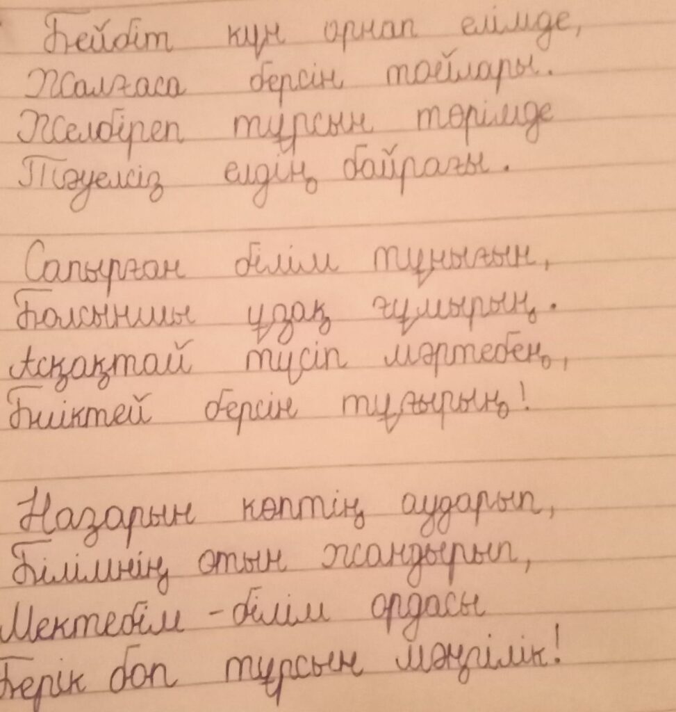 Көркем жазу. Хасанова Гүлназ Абай атындағы мектеп лицей Поделиться FacebookTwitterPinterestWhatsApp Басқа қатысушылар Даярлық сыныптары мен 1-сынып оқушылары арасында өткен Республикалық «көркем жазу» байқауы Көркем жазу. Багдад Кеменгер 0 Даярлық сыныптары мен 1-сынып оқушылары арасында өткен Республикалық «көркем жазу» байқауы Көркем жазу. Шаяхмет Әдемі 0 Даярлық сыныптары мен 1-сынып оқушылары арасында өткен Республикалық «көркем жазу» байқауы Көркем жазу. Абдреш Айзере 0 Даярлық сыныптары мен 1-сынып оқушылары арасында өткен Республикалық «көркем жазу» байқауы Көркем жазу. Арын Абдулла 0 Даярлық сыныптары мен 1-сынып оқушылары арасында өткен Республикалық «көркем жазу» байқауы Көркем жазу. Махамбетова Амина 0