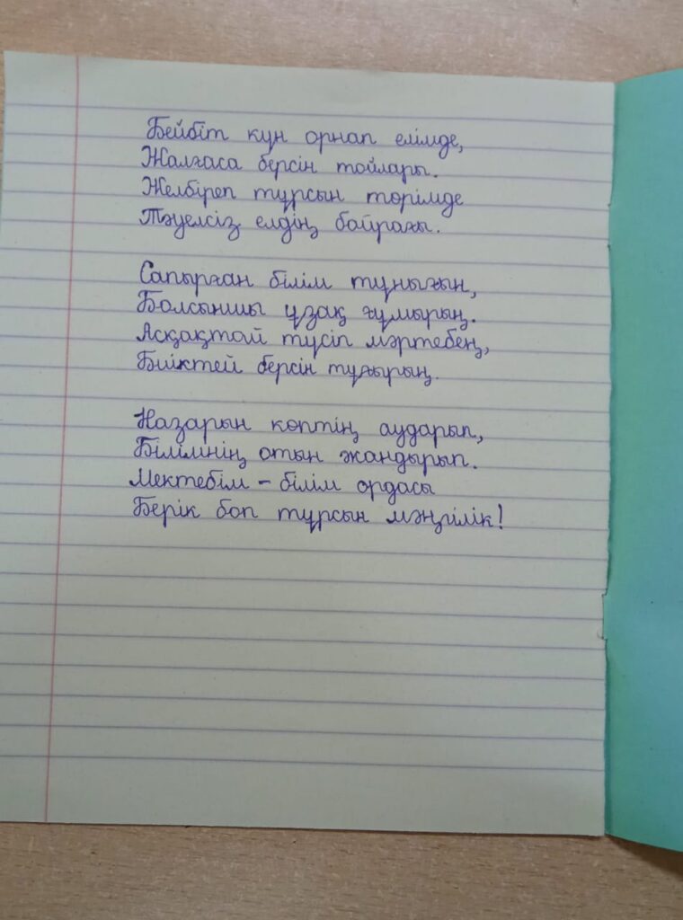 Көркем жазу. Усимхан Айзия Түркістан облысы Мактаарал ауданы "N50 Үлгілі ЖББМ"КММ 3" А" сынып оқушысы Усимхан Айзия Әзімханқызы.Жетекшісі: Каримова Гаухар Базарбаевна Поделиться FacebookTwitterPinterestWhatsApp Басқа қатысушылар Даярлық сыныптары мен 1-сынып оқушылары арасында өткен Республикалық «көркем жазу» байқауы Көркем жазу. Хасанова Гүлназ 0 Даярлық сыныптары мен 1-сынып оқушылары арасында өткен Республикалық «көркем жазу» байқауы Көркем жазу. Багдад Кеменгер 0 Даярлық сыныптары мен 1-сынып оқушылары арасында өткен Республикалық «көркем жазу» байқауы Көркем жазу. Шаяхмет Әдемі 0 Даярлық сыныптары мен 1-сынып оқушылары арасында өткен Республикалық «көркем жазу» байқауы Көркем жазу. Абдреш Айзере 0 Даярлық сыныптары мен 1-сынып оқушылары арасында өткен Республикалық «көркем жазу» байқауы Көркем жазу. Арын Абдулла 0