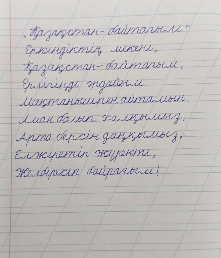 Көркем жазу. Жәнібек Жансая Алматы облысы,Қарасай ауданы,Шалқар ауылы "Шалқар орта мектебі"КММ-нің 1"Г"сынып оқушысы. Жетекшісі: Оспанова Алмагуль Баурбековна Поделиться FacebookTwitterPinterestWhatsApp Басқа қатысушылар «ҮЗДІК АВТОРЛЫҚ БАҒДАРЛАМА» БАЙҚАУЫ Махамбетова Асемгул Махамбетовна 0 «АЛТЫН ҚАЗЫНА» КӨРКЕМ ЖӘНЕ СӘНДІК-ҚОЛДАНБАЛЫ ӨНЕР КОНКУРСЫ Байқауға қатысушы: Маммадинов Тимур 0 2-сынып оқушылары арасында өткен Республикалық «көркем жазу» байқауы Амандық Муслим. Көркем жазу 0 2-сынып оқушылары арасында өткен Республикалық «көркем жазу» байқауы Қуанышбай Ару. Көркем жазу 0 2-сынып оқушылары арасында өткен Республикалық «көркем жазу» байқауы АМАНДЫҚ МУСЛИМ БОЛЫСҰЛЫ. Көркем жазу 0