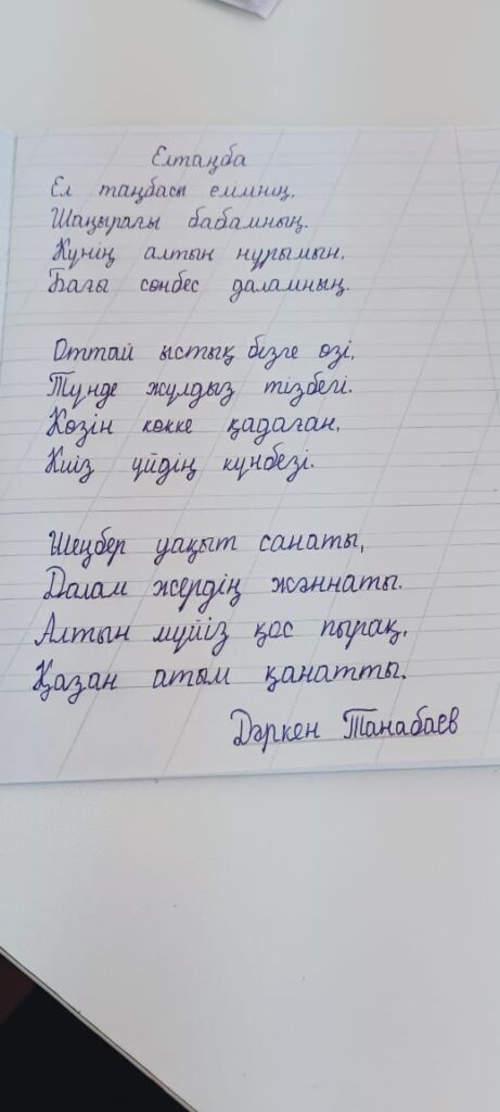 Мұхамеджан Жаннұр Жалғасқызы. Көркем жазу Иманов атындағы шағын жинақты жалпы білім беретін мектеп Жетекші Досманкызы Қаламқас Поделиться FacebookTwitterPinterestWhatsApp Басқа қатысушылар «АЛТЫН ҚАЗЫНА» КӨРКЕМ ЖӘНЕ СӘНДІК-ҚОЛДАНБАЛЫ ӨНЕР КОНКУРСЫ Байқауға қатысушы: Тойбазарова Мөлдір Ержанқызы 0 «ҮЗДІК АВТОРЛЫҚ БАҒДАРЛАМА» БАЙҚАУЫ Еспембетова Раушан Жалеловна 0 «ҮЗДІК АВТОРЛЫҚ БАҒДАРЛАМА» БАЙҚАУЫ Шикунова Юлия Анатольевна 0 «ҮЗДІК АВТОРЛЫҚ БАҒДАРЛАМА» БАЙҚАУЫ Кадирова Салтанат Сатышовна 0 «ҮЗДІК АВТОРЛЫҚ БАҒДАРЛАМА» БАЙҚАУЫ Атаханова Жанагул Жусиповна 0
