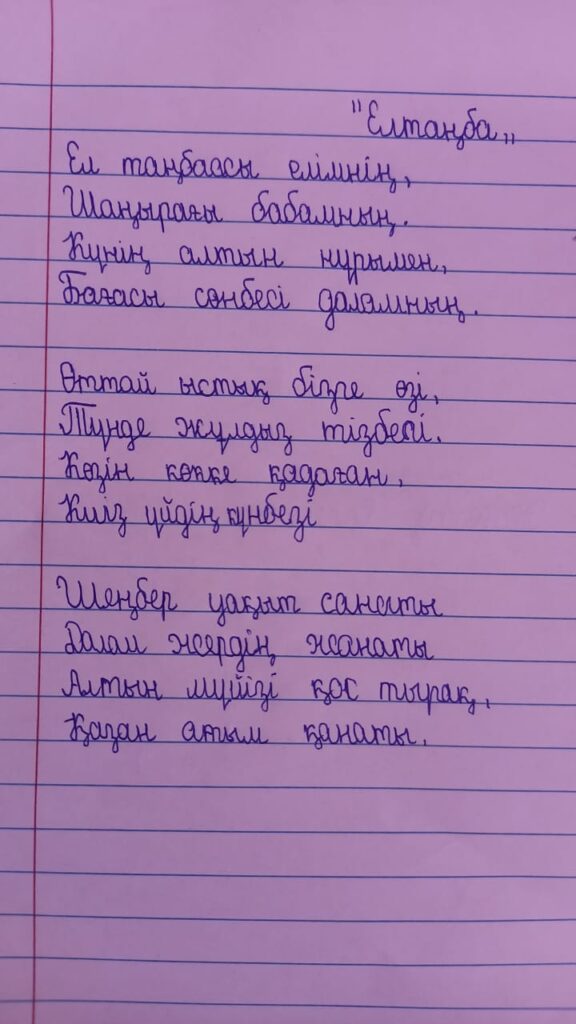 Медеу Айсезім Данабекқызы. Көркем жазу Түркістан облысы, Ордабасы ауданы,Қайнар ауылы,Дулат негізгі орта мектебі Сынып жетекшісі Тасполат Жазира Ниязбекқызы Поделиться FacebookTwitterPinterestWhatsApp Басқа қатысушылар «АЛТЫН ҚАЗЫНА» КӨРКЕМ ЖӘНЕ СӘНДІК-ҚОЛДАНБАЛЫ ӨНЕР КОНКУРСЫ Байқауға қатысушы: Тойбазарова Мөлдір Ержанқызы 0 «ҮЗДІК АВТОРЛЫҚ БАҒДАРЛАМА» БАЙҚАУЫ Еспембетова Раушан Жалеловна 0 «ҮЗДІК АВТОРЛЫҚ БАҒДАРЛАМА» БАЙҚАУЫ Шикунова Юлия Анатольевна 0 «ҮЗДІК АВТОРЛЫҚ БАҒДАРЛАМА» БАЙҚАУЫ Кадирова Салтанат Сатышовна 0 «ҮЗДІК АВТОРЛЫҚ БАҒДАРЛАМА» БАЙҚАУЫ Атаханова Жанагул Жусиповна 0