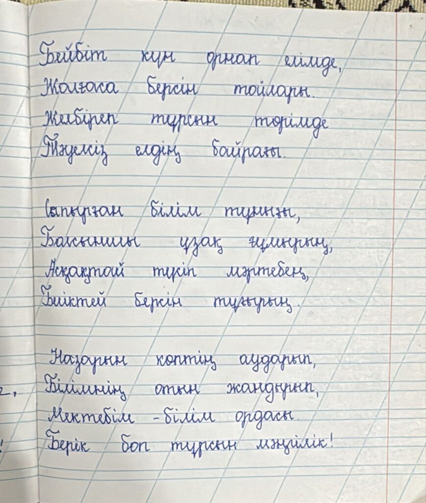 РАШАТ НҰРЖІГІТ ƏДІЛҰЛЫ. Көркем жазу Поделиться FacebookTwitterPinterestWhatsApp Басқа қатысушылар «ҮЗДІК САБАҚ ЖОСПАРЫ» БАЙҚАУЫ Нуржамал Пернекуловна 0 «АЛТЫН ҚАЗЫНА» КӨРКЕМ ЖӘНЕ СӘНДІК-ҚОЛДАНБАЛЫ ӨНЕР КОНКУРСЫ Байқауға қатысушы: Бомм Татьяна Максимовна 0 «АЛТЫН ҚАЗЫНА» КӨРКЕМ ЖӘНЕ СӘНДІК-ҚОЛДАНБАЛЫ ӨНЕР КОНКУРСЫ Байқауға қатысушы: Сакипова Милана Шоматовна 0 2-сынып оқушылары арасында өткен Республикалық «көркем жазу» байқауы Мергенбай Омар Ерланұлы. Көркем жазу 0 «АЛТЫН ҚАЗЫНА» КӨРКЕМ ЖӘНЕ СӘНДІК-ҚОЛДАНБАЛЫ ӨНЕР КОНКУРСЫ Байқауға қатысушы: Абай Әлімжан Мағжанұлы 0