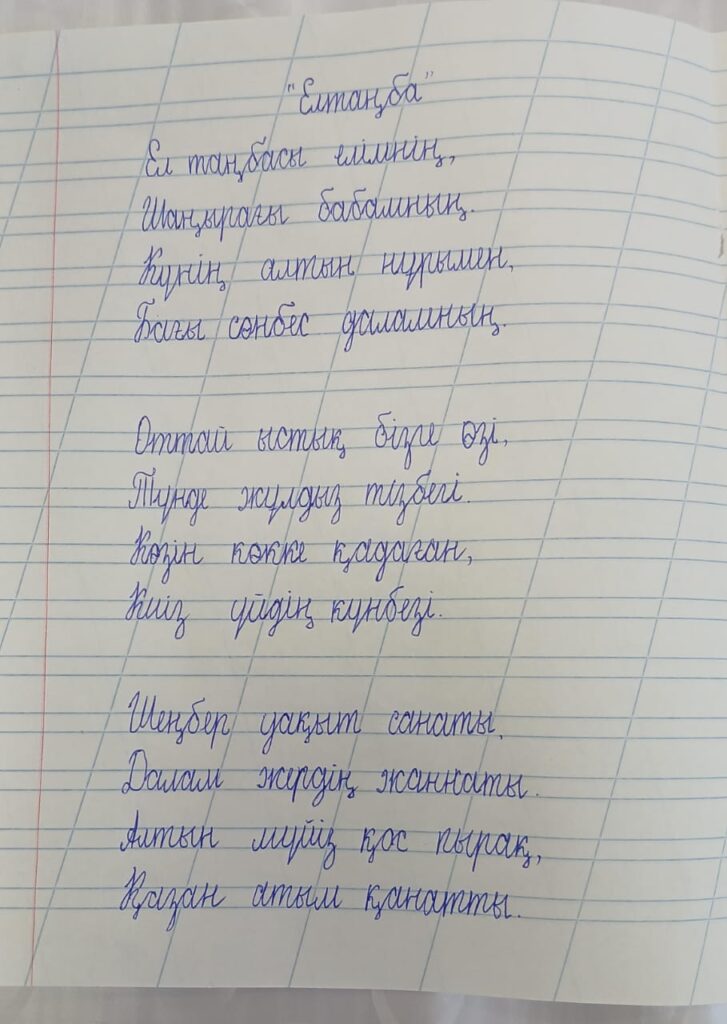 Сативалдиева Гулрухбегим. Көркем жазу №109 жалпы орта мектеп Мұғалім: Шадиметова Манзура 3-в сынып оқушысы Сативалдиева Гулрухбегим Поделиться FacebookTwitterPinterestWhatsApp Басқа қатысушылар «АЛТЫН ҚАЗЫНА» КӨРКЕМ ЖӘНЕ СӘНДІК-ҚОЛДАНБАЛЫ ӨНЕР КОНКУРСЫ Байқауға қатысушы: Тойбазарова Мөлдір Ержанқызы 0 «ҮЗДІК АВТОРЛЫҚ БАҒДАРЛАМА» БАЙҚАУЫ Еспембетова Раушан Жалеловна 0 «ҮЗДІК АВТОРЛЫҚ БАҒДАРЛАМА» БАЙҚАУЫ Шикунова Юлия Анатольевна 0 «ҮЗДІК АВТОРЛЫҚ БАҒДАРЛАМА» БАЙҚАУЫ Кадирова Салтанат Сатышовна 0 «ҮЗДІК АВТОРЛЫҚ БАҒДАРЛАМА» БАЙҚАУЫ Атаханова Жанагул Жусиповна 0