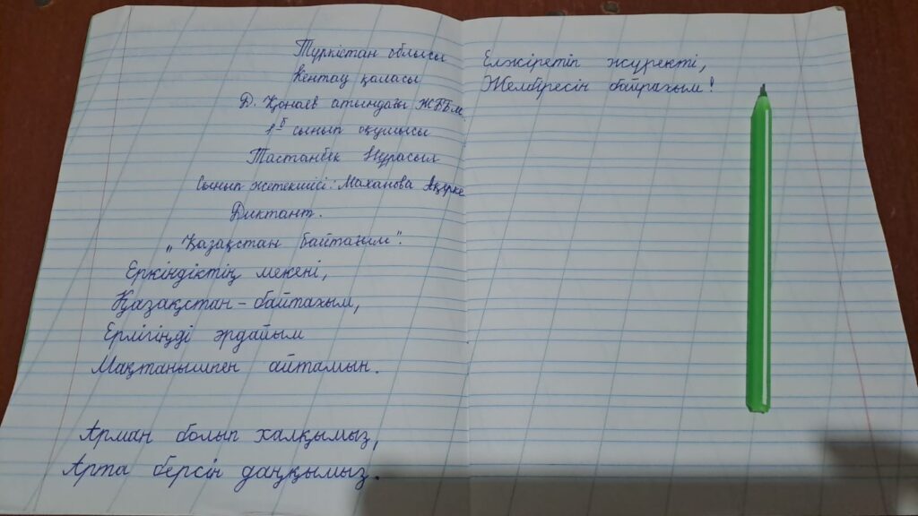 Тастанбек Нұрасыл. Көркем жазу Тастанбек Нұрасыл Д.Қонаев атындағы ЖББМ. Жетекшісі: Маханова Ақерке. 1"б" сынып Поделиться FacebookTwitterPinterestWhatsApp Басқа қатысушылар «ҮЗДІК АВТОРЛЫҚ БАҒДАРЛАМА» БАЙҚАУЫ Махамбетова Асемгул Махамбетовна 0 «АЛТЫН ҚАЗЫНА» КӨРКЕМ ЖӘНЕ СӘНДІК-ҚОЛДАНБАЛЫ ӨНЕР КОНКУРСЫ Байқауға қатысушы: Маммадинов Тимур 0 2-сынып оқушылары арасында өткен Республикалық «көркем жазу» байқауы Амандық Муслим. Көркем жазу 0 2-сынып оқушылары арасында өткен Республикалық «көркем жазу» байқауы Қуанышбай Ару. Көркем жазу 0 2-сынып оқушылары арасында өткен Республикалық «көркем жазу» байқауы АМАНДЫҚ МУСЛИМ БОЛЫСҰЛЫ. Көркем жазу 0