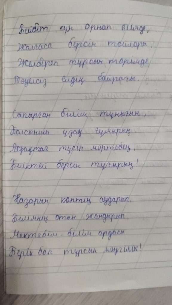 Темирбеков Нуржан Серикович. Көркем жазу Қостанай облысы Науырзым ауданы Қарамеңді ауылы Сынып жетекшісі Какенова Алмагуль Сайлауовна Поделиться FacebookTwitterPinterestWhatsApp Басқа қатысушылар 2-сынып оқушылары арасында өткен Республикалық «көркем жазу» байқауы Бейсен Айша. Көркем жазу 0 2-сынып оқушылары арасында өткен Республикалық «көркем жазу» байқауы Сатбалдин Құрмет Ералыұлы. Көркем жазу 0 2-сынып оқушылары арасында өткен Республикалық «көркем жазу» байқауы Бақытжан Бауыржан Жұмабекұлы. Көркем жазу 0 2-сынып оқушылары арасында өткен Республикалық «көркем жазу» байқауы Габдолнуров Нурали Жандосович. Көркем жазу 0 2-сынып оқушылары арасында өткен Республикалық «көркем жазу» байқауы Танат Айханым Мұратбекқызы. Көркем жазу 0