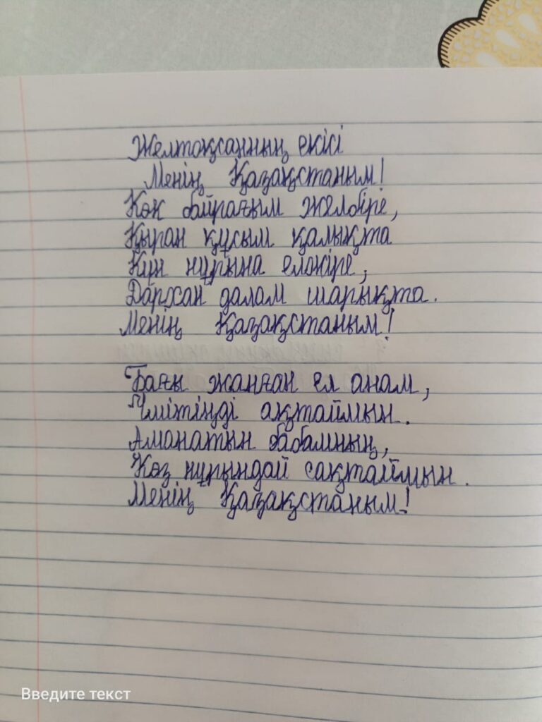 Жақай Толғанай. Көркем жазу Сынып жетекшісі: Джабаева Куланда Турапбаевна Поделиться FacebookTwitterPinterestWhatsApp Басқа қатысушылар «ҮЗДІК АВТОРЛЫҚ БАҒДАРЛАМА» БАЙҚАУЫ Сейтова Назым Амирбековна 0 «ҮЗДІК АВТОРЛЫҚ БАҒДАРЛАМА» БАЙҚАУЫ Гайдайчук Юлия Александровна 0 «ҮЗДІК АВТОРЛЫҚ БАҒДАРЛАМА» БАЙҚАУЫ Тасылбаева Динара Казезовна 0 «АЛТЫН ҚАЗЫНА» КӨРКЕМ ЖӘНЕ СӘНДІК-ҚОЛДАНБАЛЫ ӨНЕР КОНКУРСЫ Байқауға қатысушы: Темирболатова Амели 0 «ҮЗДІК АВТОРЛЫҚ БАҒДАРЛАМА» БАЙҚАУЫ Кузьмина Мария Владимировна 0